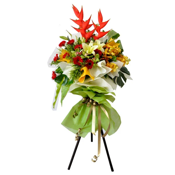 Congratulatory Flower Stands are ideal for grand openings, new business ventures, store launches, and celebratory occasions. A complimentary message card is included for your personal greetings. Kindly ensure your message and sender details are clearly provided.